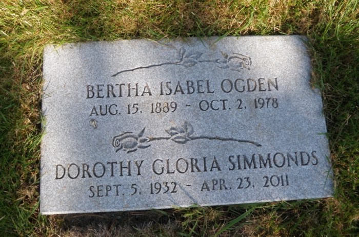Bertha Ogden's and her daughter Gloria Simmonds Headstone at Veteran's Cemetery, Esquimalt, British Columbia