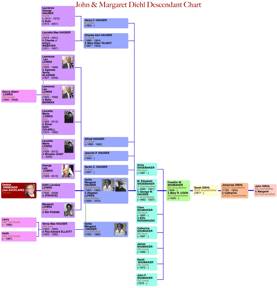 • Pedigree charts are read left to right with the start person being Debbie or myself.