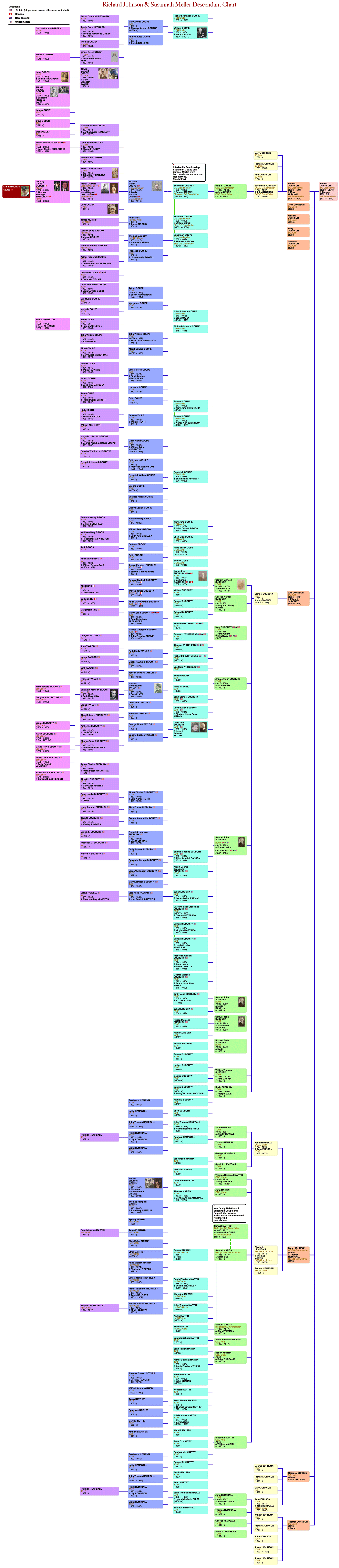 • Descendant charts are read right to left with the start person on the right and following generations as you move to the left (ie. children, grandchildren and so on.)