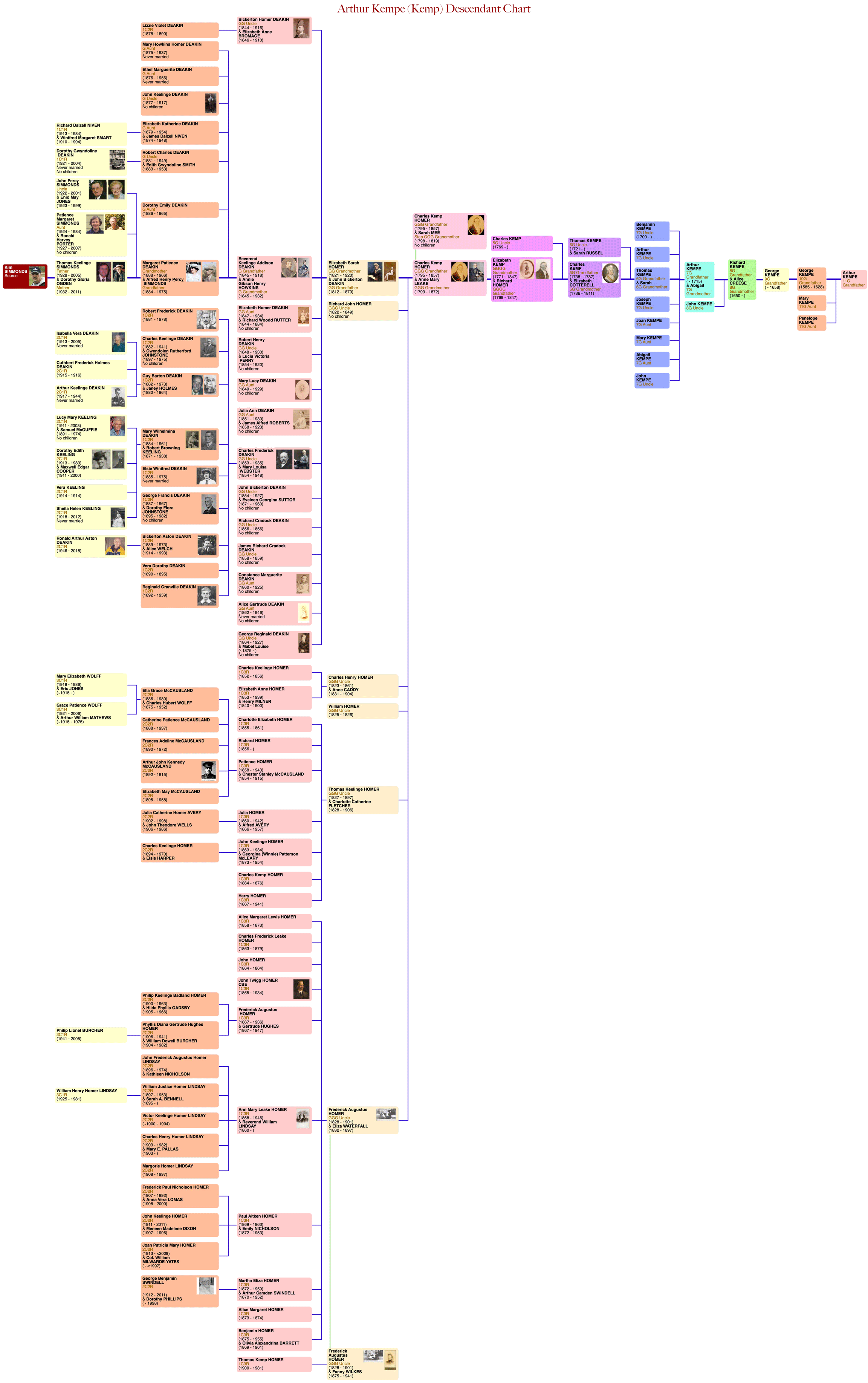 • Descendant charts are read right to left with the start person on the right and following generations as you move to the left (ie. children, grandchildren and so on.)
