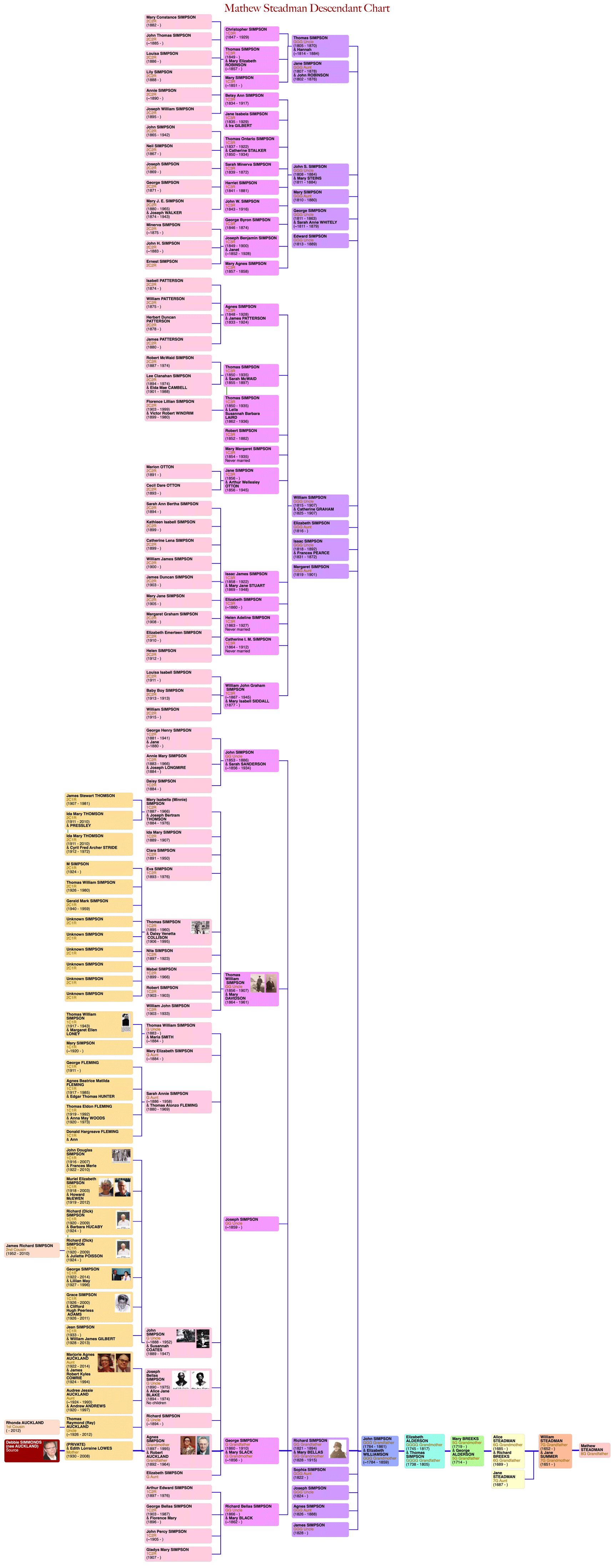 • Descendant charts are read right to left with the start person on the right and following generations as you move to the left (ie. children, grandchildren and so on.)